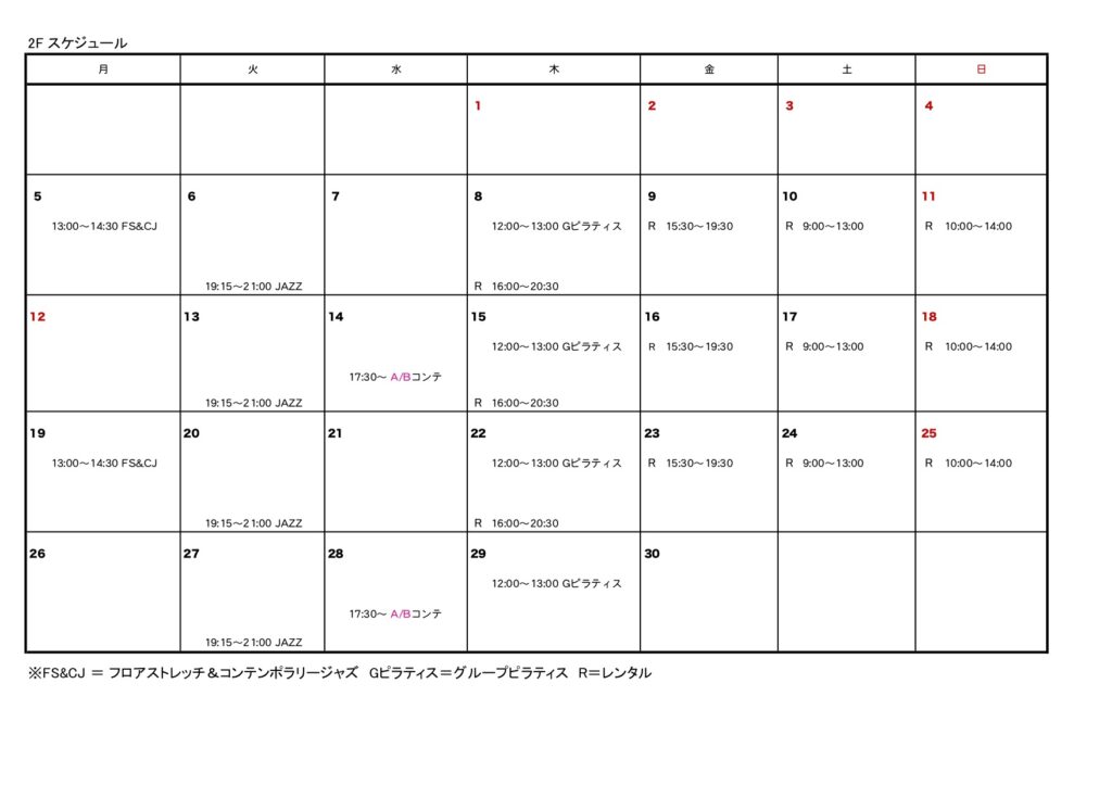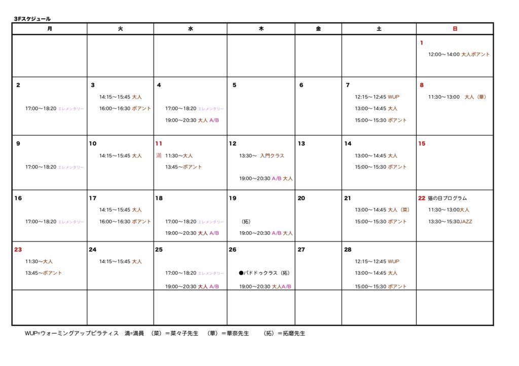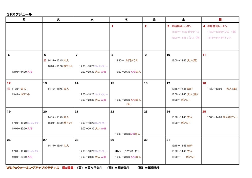 ●2026/1/24 2月のスケジュールができました!レッスン受講の方はお申込みが必要です。