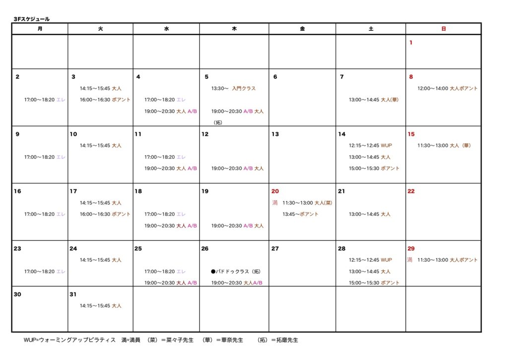 ●2026/2/21 3月のスケジュールができました!レッスン受講の方はお申込みが必要です。
