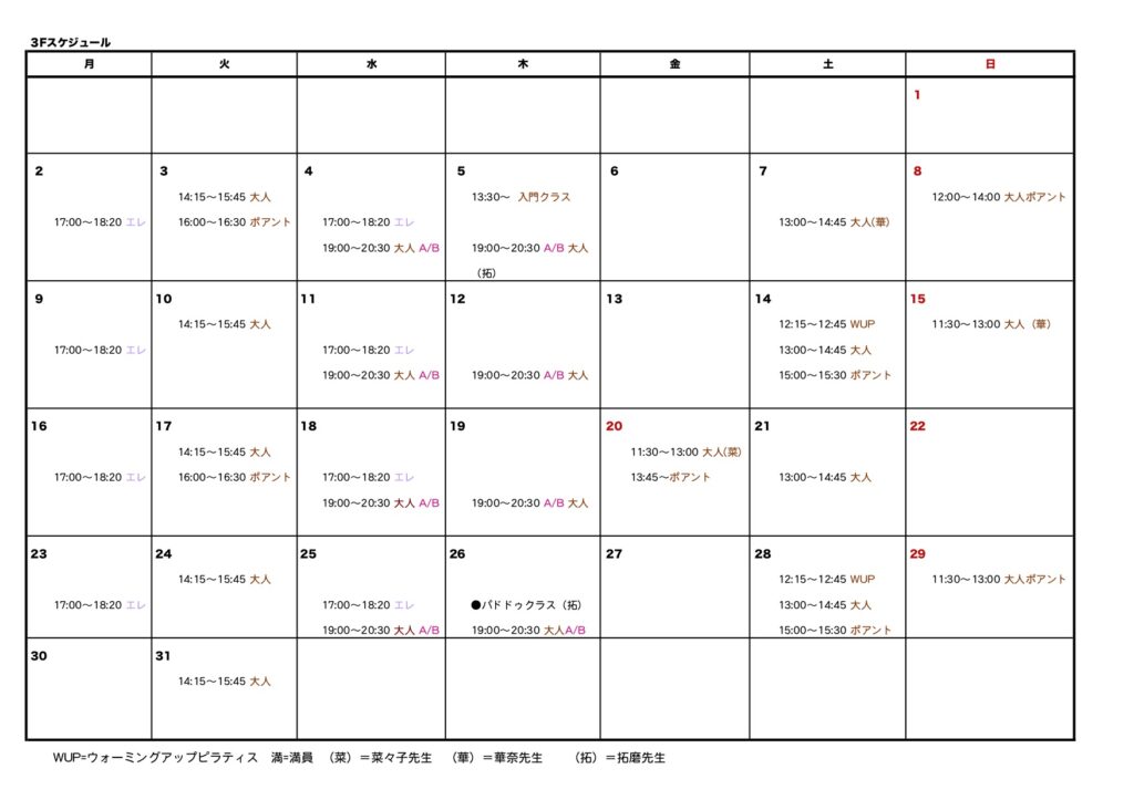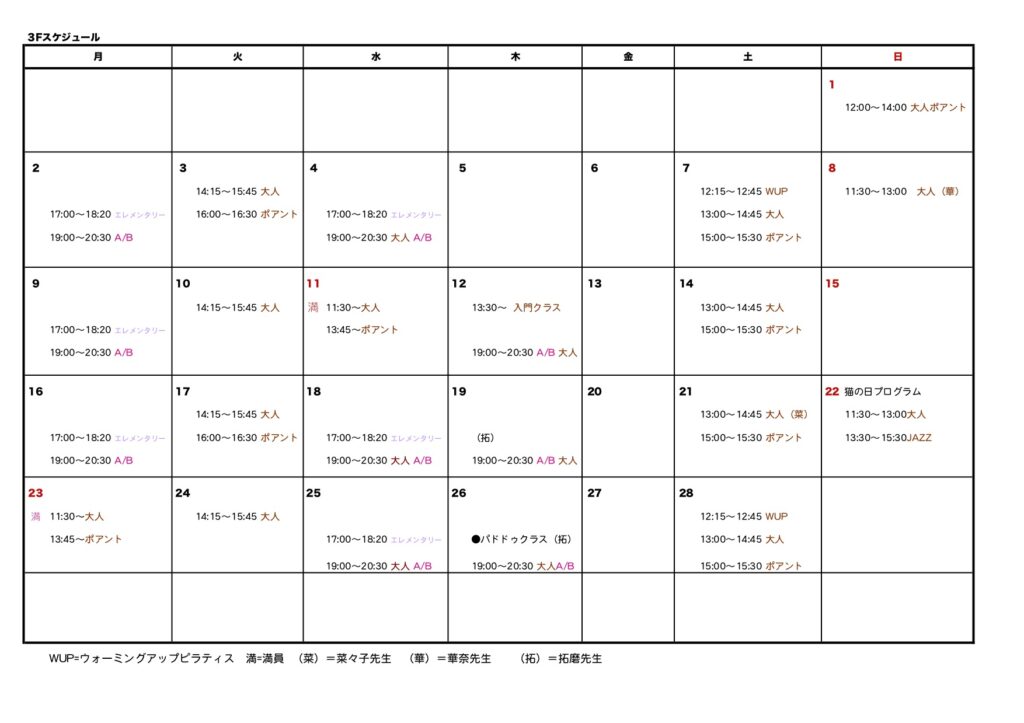 ●2026/2/21 3月のスケジュールができました!レッスン受講の方はお申込みが必要です。